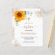 Um fundo branco decorado com girassol de cor aquosa, verde de eucalipto e folhas de ouro e gotas falsas de ouro. Personalize e o nome e os detalhes da cerimônia. Letras pretas e ouros coloridas. Sexo neutro. Traseira: fundo branco com quedas de brilho de falso ouro