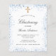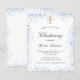 Um batizado moderno e elegante, celebrando um menino. Um fundo branco na moda, decorado com poeira brilhante azul e uma cruz ouro. Personalize e adicione um nome e detalhes da parte. Letras pretas coloridas.
