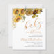 Este doce convite para o chá de fraldas apresenta um buquê de girassóis. Abaixo, as palavras "baby in bloom" aparecem no elegante roteiro laranja. Personalize o texto com o nome da futura mãe no roteiro laranja e os detalhes na fonte serif de cinzas de carvão em um fundo branco. Ideal para um chá de fraldas de outono.