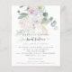 Boho Floral Eucalyptus Doce Dezesseis. Um alternativo MENOR de 4,5" x 5,6", compatível com o orçamento. Disponível em um STOCK de PLACA SEMI GLOSS 110 lb ou um STOCK de PAPEL THINNER SATIN FINISH 80 lb. Os envelopes são um extra opcional. Flores e folhagem em estilo boêmio moderno, em verde-sábio e pinks de cima, com tonalidade formando-se para cair parcialmente atrás do texto. Doce Sessenta está em um roteiro de escrita manual. Personalize facilmente o texto para seus próprios detalhes.