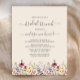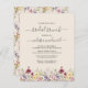 Este elegante design floral boho apresenta uma borda de flores silvestres de aquarela em um fundo creme. As palavras "brunch" e o nome da noiva a ser aparecem na escrita de caligrafia de cinza de carvão com baloiços decorativos no início e no fim, com o texto restante na letra serif. Um padrão coordenado de flor silvestre enfeita a parte de trás do convite. (Para guardar as hastes, substitua apenas as letras do nome da noiva, deixando os símbolos no lugar.)