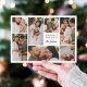 Exiba 7 de suas fotos favoritas do ano com esse cartão de Natal de colagem de fotos múltiplas, econômico e elegante! Esse design editável apresenta sete fotos: três imagens quadradas, três fotografias retangulares verticais e uma imagem retangular horizontal. Aninhada entre as fotos está a saudação de Natal de sua escolha e o nome da sua família em caligrafia moderna manuscrita. Esses cartões têm no verso um padrão de flocos de neve brancos sobre a cor de sua escolha. Escolhemos um tom terroso de terracota boho, pois combina com nossas fotos de modelo, mas você pode usar a cor que desejar! Esse design foi feito para compartilhar suas fotos, mantendo um visual simples e minimalista. Adoramos cartões de fotos de Natal, pois são um especial souvenir para o ano que vem. Esses cartões foram feitos pensando na personalização, e todos os aspectos desse design (fontes, tamanho do texto, cores, fundo, imagem, posicionamento) podem ser editados, movidos ou removidos para atender às suas necessidades. Clique em "Personalizar este modelo" para editar o texto e enviar suas próprias fotos. Para modificações mais avanç