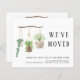 Anúncio simples e comovente com orçamento, com aquarelas boho de plantas penduradas e uma tipografia moderna mínima. Na frente, você pode personalizar com sua família ou seu primeiro nome, o texto "Sai Conosco em Nossa Nova Casa" e seu novo endereço. No verso, você pode personalizar seu anúncio com mais detalhes e incluir um número de telefone e e-mail, se desejar.