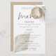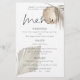 Orçamento Boho Pampas Grass Wedding Menu. Um preço orçamentário de 5,5" x 8,5", em uma elegante estoque LINEN de 110 lb - para uma sensação de luxo pelo valor do excelente, isso é perfeito para menus, além de convites e programas, etc. Este alternativo de tamanho de orçamento também está disponível em outras opções de papel. O estoque do cartão SEMI-GLOSS de 110 lb tem aproximadamente a mesma espessura do cartão postal, portanto também funciona bem para convites. O papel FELT de 100 lbs é colorido por buff, NÃO branco, então adiciona um toque rústico. O estoque de papel MATTE de 80 lb é branco brilhante, para impressão nítida, excelente para seus menus e programas, enquanto o papel SATIN de 80 lb é fino e leve, ideal para gabinetes. NOTE QUE OS ENVELOPES OPCIONAIS SÃO UM POUCO MAIORES EM TAMANHO A 6,75" x 9" aprox. Pampas boêmicas e palma seca do ventilador e script de na moda para o menu do cabeçalho. Personalize facilmente o resto do texto para seus próprios detalhes, o que inclui alternativos para suas opções vegetarianas ou vegetarianas. Um fundo de creme coordenado está atrás.