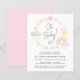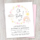 Um convite à bebê caprichosa, bonitinho e amigável em termos de orçamento, que apresenta cores claras, cor-de-rosa pastel e amarela de inspiração boho de um arco-íris, sol, corações, estrelas, luas e nuvens e "Oh Baby!" num roteiro de caligrafia em na moda.