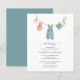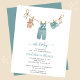 Roupas de bebê doces penduradas em um varal nesta convite de chá de bebê boho. Apresenta macacão de tricô, sapatos e ursinho fofo. Este convite encantador tem tipografia cursiva com as palavras "oh baby" em azul suave, bem como letra cursiva para o nome da mamãe. Veja itens coordenados em nossa loja. **POR FAVOR, LEIA ANTES DE COMPRAR** A papelaria econômica mede 4,5 x 5,6 e cabe dentro de um envelope A6. Não vem com envelopes, mas você pode adicionar envelopes brancos ao seu pedido. Cada folha é um item - não é necessário corte. O cartão padrão é branco brilhante com acabamento semi-brilho e peso de 110lbs, adequado para papelaria. Por favor, note: se você mudar para a opção de papel de seda, é um papel mais fino de 80lb, mais parecido com páginas de revista do que cartão. Use o Serviço de Design ao Vivo se precisar de ajuda com seu design após fazer alterações ou se o design não parecer mais correto ou estiver cortado. Você pode atualizar seu pedido para um tamanho maior, papel de alta qualidade e envelopes clicando em transferir e escolhendo cartão plano 5 X 7 ou clicando no link da nossa loja Enchanted Finch para outras opções de papel. Seu pedido vai diretamente para a gráfica. O que você vê na tela é o que será impresso e enviado a você. Por favor