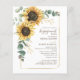 Orçamento Girassol Eucalyptus Dourado Cartaz geométrico Convite para Noivado com este modelo bonito com um belo buquê floral rústico com a tipografia simples moderna. DICA: Cartões de suíte de casamento iguais, como RSVP, programas de casamento, banners, tapeçarias, etiquetas de presentes, placas e outras pegadas de casamento e guloseimas estão disponíveis na coleção abaixo com esta design.