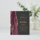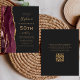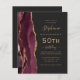 A borda esquerda deste elegante e moderno convite de aniversário 50º apresenta uma borda vermelha e arrojada de cor d'água, aparada com brilho dourado. O texto personalizável combina manuscrito dourado, fontes em copperplate e itálico em um fundo preto de slate. Adicione instruções RSVP na parte traseira da placa, juntamente com um código QR que os convidados podem verificar para responder on-line.