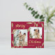 Orçamento, Elegante, Moderna Borgonha e Dourada Folha Botânica 2 Colagem Fotográfica Feliz Feriado de Natal (fino!). Nota: Papel mais fino do que cartão postal! Esta festiva, branca, modelo de dois (2) cartões de feriado mostra uma bonito colagem fotográfica, folhas botânicas de folha de ouro falso, winterberry e diz Feliz Natal! O texto de saudação de "Feliz Natal" é escrito em um belo tipo de letra tipográfica com letras de mão no vermelho burgundy ou bordo fundo colorido. No verso, uma foto horizontal com a armação de ouro e folhas de folhosas douradas, dispostas em burgundy. Escolher excelente para sua família e amigos nesta época de Natal e Férias. Cartões de natal baratos.
