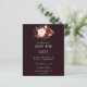 ** SATIN PAPER É PAPEL FINO. ATUALIZE O PAPEL PARA OBTER UM PAPEL MAIS ESPESADO. TEM UMA OPÇÃO PARA ENVELOPES. *** Economize dinheiro em convites formais com este convite menor que tem uma opção para envelopes. Prepare seus convidados para o maravilhoso casamento com seu Burgundy Marsala Floral Salve a Data - Cartões de Borgonha Escuros. Quer uma versão maior? Confira a coleção Salvar Data para cartões: https://www.zazzle.com/collections/save_the_date_collection_2-119350686298077869?rf=238937196885903396