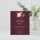 ** SATIN PAPER É PAPEL FINO. ATUALIZE O PAPEL PARA OBTER UM PAPEL MAIS ESPESADO. TEM UMA OPÇÃO PARA ENVELOPES. *** Economize dinheiro em convites formais com este convite menor que tem uma opção para envelopes. Prepare seus convidados para o maravilhoso casamento com seu Burgundy Marsala Floral Salve a Data - Cartões Vermelhos. Quer uma versão maior? Confira a coleção Salvar Data para cartões: https://www.zazzle.com/collections/save_the_date_collection_2-119350686298077869?rf=238937196885903396