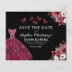 Anuncie sua quinceañera em estilo com a Floral Burgundy Salve o Convite de Aniversário. Este elegante design apresenta matizes robustos, enfeitados com delicados sotaques florais, perfeitos para uma celebração de eterno e regal. O layout sofisticado fornece todos os detalhes importantes, garantindo que seus convidados marquem seus calendários para o dia especial. Independentemente de serem combinados com ouro ou outras cores, os tons burguentos evocam uma sensação de romance e grandiosidade. Ponha o tom para a sua quinceañera com este belo trabalho feito para salvar a data, assegurando que o seu evento seja um para lembrar.