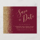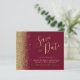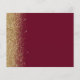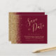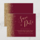 Este cartão elegante de "save the date" econômico apresenta uma borda de brilho falso dourado ao longo da borda esquerda. O texto personalizável combina uma fonte de escrita manual caprichosa dourada, copperplate e itálico em um fundo vermelho burgundy. O verso apresenta um design correspondente de burgundy e brilho dourado. NOTA: Os envelopes não estão incluídos automaticamente com esses convites econômicos, então, por favor, lembre-se de escolher a opção "envelopes brancos em branco"!