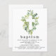 Um valor para o alternativo do ORÇAMENTO em tamanho menor de 4,5 x 5,6" de semirbrilho de 110 lbs, que é de espessura semelhante a um cartão postal (no entanto, não é adequado para uso como cartão postal). POR FAVOR, OBSERVE QUE HÁ UM convite por folha. Botânico deixa o batismo cruzado convite para sua filha ou filho. Uma grande cruz com folhagem verde está na metade superior. O cabeçalho é grande em na moda lowercase com os detalhes abaixo. Personalize facilmente o texto para seus próprios detalhes.