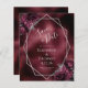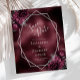 Este elegante casamento moderno salva o cartão de data apresenta uma estrutura geométrica prateada decorada com buquês florais de burgundy e prata em um fundo vermelho de película vermelho burgundy. O texto personalizável combina a escrita manual imétrica de cinzas prateadas, a placa de cobre e as fontes itálicas.