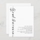 Um valor para o alternativo do ORÇAMENTO em tamanho menor de 4,5 x 5,6" de semirbrilho de 110 lbs, que é de espessura semelhante a um cartão postal (no entanto, não é adequado para uso como cartão postal). POR FAVOR, OBSERVE QUE HÁ UM convite por folha. Orçamento Caligrafia Código QR Casamento Noite Convite. Adicione seu código QR ao seu site de casamento no verso faz com que esta seja uma opção conveniente para seus convidados para RSVP e veja todos os detalhes sem a necessidade de RSVP separado e cartões de detalhes. Você pode criar códigos QR gratuitamente on-line. Basta pesquisar "Criador de código QR" e muitas opções surgem para criar gratuitamente. Especialmente para seus convidados noturnos, o roteiro de estilo é girado para o lado esquerdo, com todos os detalhes elegantemente para a direita, com muito espaço em branco para uma sensação contemporânea. Personalize facilmente com suas informações.
