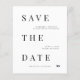 O casamento Elegante de tipografia contemporânea a preto e branco do BUDGET salva o cartão de data. ++++++++++ Adequado para qualquer estação e tema. +++++++++ Fácil de personalizar com o seu texto! +++++++ LEIA ISTO ANTES DE COMPRAR! Este é um cartão de casamento de barato orçamentário impresso em uma folha de papel (cada folha tem um cartão). +++ Para obter a melhor qualidade de preço, nosso conselho é escolher o tipo de papel Semi-Gloss (é espesso o suficiente para ser usado para papelaria) +++ Se você precisar de envelopes, escolha a OPÇÃO ENVELOPE. ++ Verifique duas vezes todas as informações e a ortografia do seu texto porque você receberá exatamente o que você vê - ninguém mais verificará nada antes de imprimir. +++ Esta placa foi projetada para o tamanho de 4,5" x 5,6". Caso você escolha outro tamanho do cartão e o texto saia da página, tudo precisa ser corrigido antes de adicionar o produto ao carrinho. Peça ajuda ao Serviço de Design ao Vivo.