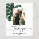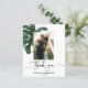Budget Monstera Tropical Leaf Wedding Cartões de agradecimentos Expresse sua gratidão com elegância e charme usando nosso Cartões de agradecimentos de Casamento amigável, com sua querida foto de casamento, folha de monstera e fonte de caligrafia lindamente trabalhada. Criado com cuidado, este cartões de agradecimentos oferece uma maneira sincera de expressar apreço aos seus entes queridos. A inclusão da sua foto de casamento adiciona um toque pessoal, permitindo que você compartilhe uma lembrança carinhosa do seu dia especial. A letra da caligrafia adiciona um toque de sofisticação e refinamento à sua mensagem de obrigados. Suas curvas delicadas e linhas graciosas transmitem calor e sinceridade, fazer cada carta se sinta verdadeiramente sentida.