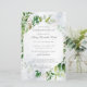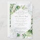 O convite a funeral moderno elegante apresenta uma estrutura botânica geométrica verde e cinza. Uma lavagem de cor de água de cinza macia dá-lhe um ar bastante digno. O nome da pessoa morta está escrito em um texto tradicional. Todo o texto pode ser facilmente editado para criar uma lembrança pessoal.