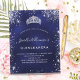 Para uma elegante Quinceañera, 15. Uma cor azul de fundo, a cor azul é irregular. Decorado com pó falso prateado e uma tiara, coroa. Personalize e adicione um nome, idade e detalhes da festa. O nome é escrito com um script de estilo manuscrito