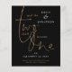 Citação romântica Data de Salvamento do Casamento Dourado Preto. Uma citação romântica E Os Dois Se Tornarão Um está em uma tipografia de na moda em ouro com seus nomes à direita e data de casamento embaixo, que você pode facilmente personalizar em um fundo negro com a coordenação do fundo do ouro do outro lado. Você também pode alterar as cores de fundo em ambos os lados para combinar o tema de cor do seu casamento, se desejar, por meio da opção Personalizar Mais, assim como de outras edições. Se precisar de ajuda, por favor, me mande mensagem.