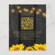 Elegante na moda de verão chic ou de outono modelo de convite para o casamento outono de outono com rsvp online em madeira de celeiro castanho-escuro com belos girassóis de cor laranja ferrugem e dourados amarelos borda lateral com uma lata de água turquesa e cordas ou luzes brilhantes. Fácil de personalizar com seus detalhes e um código QR de varredura gerado automaticamente para seu site ou qualquer outro link on-line. +++++++ O convite é adequado para o moderno e elegante verão ou quedas no outono, país russo do quintal exterior, celeiro de fazenda ou casamentos de jardim. ++++++++++++++++++++++++++, LEIA ISTO ANTES DE COMPRAR! Este é um cartão de casamento de barato orçamentário impresso em uma folha de papel (cada folha tem um cartão). +++ Para obter a melhor qualidade de preço, nosso conselho é escolher o tipo de papel Semi-Gloss (é espesso o suficiente para ser usado para papelaria) +++ Se você precisar de envelopes, escolha a OPÇÃO ENVELOPE. ++ Verifique duas vezes todas as informações e a ortografia do seu texto porque você receberá exatamente o que você vê - ninguém mais verificará nada antes de imprimir. +++ Esta placa foi projetada para o tamanho de 4,5" x 5,6". Caso você escolha outro tamanho do cartão e o texto saia da página, tudo precisa ser corrigido antes de adicionar o produto ao carrinho. Peça ajuda ao Serviço de Design ao Vivo.