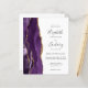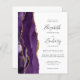 A borda esquerda deste elegante convite de casamento moderno apresenta uma borda de ágata em aquarela roxa aparada com brilho dourado falso. O texto personalizável combina fontes manuscritas, copperplate e itálico em cinza carvão em um fundo branco. O verso fornece espaço para detalhes do casamento em um fundo branco sólido, juntamente com um código QR que os convidados podem escanear para visitar seu site e responder. NOTA: Os envelopes não estão incluídos automaticamente com esses convites econômicos, então lembre-se de escolher a opção "envelopes brancos"!