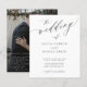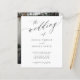 Elegante convite de casamento preto e branco com orçamento acessível com texto "the wedding of" em uma fonte de caligrafia sofisticada e seu QR CODE (gerado automaticamente). Personalize-o com sua foto de noivado no verso e seu texto. ++++++++++ Este convite de casamento atemporal é adequado para cerimônias de casamento formais e recepções de estilo moderno. +++++++++++++++++++++++++++++ POR FAVOR, LEIA ISSO ANTES DE COMPRAR! Este é um cartão de casamento econômico impresso em uma folha de papel (cada folha tem um cartão). ++++ Para a melhor relação preço-qualidade, nosso conselho é escolher o tipo de papel Semi-Gloss (é grosso o suficiente para ser usado para papelaria) ++++ Se você precisar de envelopes, escolha a OPÇÃO DE ENVELOPE. +++ Verifique todas as informações e ortografia do seu texto porque você receberá exatamente o que vê - ninguém mais verificará nada antes da impressão. ++++ Este cartão é projetado para o tamanho 4,5" x 5,6". No caso de você escolher outro tamanho do cartão e o texto ultrapassar a página, tudo precisará ser corrigido antes de adicionar o produto ao carrinho. Por favor, peça