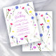 Flores silvestres coloridas da primavera rodeiam os detalhes da sua festa de aniversário. Moderno, trendy e feminino.