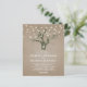 Convites de casamento florestais econômicos com um fundo de aniagem rústica, um tronco de árvore aquarela, um coração esculpido com suas iniciais, luzes cintilantes de corda e um modelo de casamento elegante.