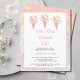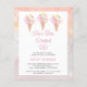 Este convite de chá de panela econômico e temático de sorvete é decorado com três cones de sorvete em aquarela, flores e um fundo pastel.