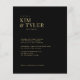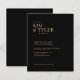 Mínimo ousado e elegante, tipografia de ouro clássico, barato convite de casamento negro com um olhar elegante e escuro. +++++ Adequado para todas as cerimônias e recepções de casamento formais de estação. +++++++++ LEIA ISTO ANTES DE COMPRAR! Este é um cartão de casamento de barato orçamentário impresso em uma folha de papel (cada folha tem um cartão). +++ Para obter a melhor qualidade de preço, nosso conselho é escolher o tipo de papel Semi-Gloss (é espesso o suficiente para ser usado para papelaria) +++ Se você precisar de envelopes, escolha a OPÇÃO ENVELOPE. ++ Verifique duas vezes todas as informações e a ortografia do seu texto porque você receberá exatamente o que você vê - ninguém mais verificará nada antes de imprimir. +++ Esta placa foi projetada para o tamanho de 4,5" x 5,6". Caso você escolha outro tamanho do cartão e o texto saia da página, tudo precisa ser corrigido antes de adicionar o produto ao carrinho. Peça ajuda ao Serviço de Design ao Vivo.