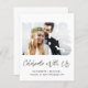 Elemento amigável do orçamento de chic ou anúncio de casamento menor e convite para recepção de casamento postada. A frente mostra sua fotografia em um recorte de "Sr. & Sra.", "Celebrar conosco" em um roteiro elegante e seus primeiros nomes e data de casamento e localização em uma simples tipografia. No lado oposto, você pode personalizar seu anúncio de casamento ou elopemento em mais detalhes, adicionar uma recepção ou convite de festas e assinar seus nomes casados em um roteiro semelhante a assinatura. Este papel semirbrilhante do orçamento é semelhante em peso ao papel fotográfico. Também está disponível uma versão maior do estoque de cartão tradicional 5x7 (mensagem para o link).