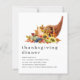 Convidado para Ação de Graças de Girassol Cornucopia. Um alternativo de 4,5 pol x 5,6 pol com preço inferior. Disponível em um STOCK DE CARTÃO SEMI GLOSS 110 lb, que é a opção padrão (recomendada para convites), OU um STOCK DE PAPEL THINNER SATIN FINISH 80 lb (ideal para gabinetes). Os envelopes são um extra opcional e são ligeiramente maiores que o tamanho da placa. O cabeçalho é grande em na moda lowercase com os detalhes abaixo. Uma ilustração rústica de uma cornucopia cheia de girassóis, abóboras e bagas.