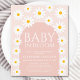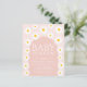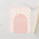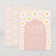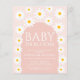 Você está planejando um chá de fraldas de menina? Este belo convite orçamental é decorado com margaridas desenhadas à mão num fundo de arco rosa. Diz "Baby in Bloom" na tipografia da na moda. Facilmente personalizável. Desenho original © Michele Davies.