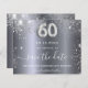Um elegante cartão de Save the Date para uma festa de 60 anos. Um fundo metálico prateado falso moderno, decorado com pó de brilho falso. Personalize e adicione uma data e nome/idade. O texto: Salve a Data é escrito com um estilo de letra manuscrita trendy grande. Número 60 com uma fonte estilo balão.