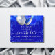 Um fundo azul real moderno decorado com gotas azuis reais, confetes e balões. Personalize e adicione uma data e nome/idade. O texto: Salve a Data é escrito com um estilo de letra manuscrita grande e moderno.