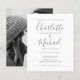 Com sua foto, nomes com estilo de assinatura, este elegante convite de casamento cinza e branco pode ser personalizado com suas informações em letras cinza chiques. Projetado por Thisisnotme©