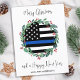Mande saudações de Feliz Natal a amigos e familiares com este Cartão Único de Natal da Polícia de Linha Azul - Feriado em uma design de bandeira americana em cores da Polícia, design preto e branco moderno com santo e bagas. Personalize com o nome da família. Este cartão de Natal da polícia é perfeito para famílias da polícia ou cartões de natal do departamento de polícia. COPYRIGHT © 2022 Judy Burrows, Black Dog Art - Todos Os Direitos Reservados. Cartão-postal de Feriado Azul Bandeira da Polícia de Orçamento