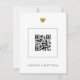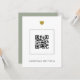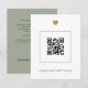 Este design minimalista é perfeito para um casamento moderno. Branco na frente com um verso verde cinza. Com um código QR na frente que está vinculado ao URL do seu site de casamento. Você pode obter um código QR facilmente online. Uma vez que você tenha seu código único, você irá carregá-lo aqui e, em seguida, adicionar seus primeiros nomes.