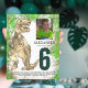 O convite para festa de aniversário de dinossauros T-Rex com modelo fotográfico para o menino que está fazendo seis anos e ama dinossauros. Este T Rex itinerante convida os fãs de Dino para uma festa de aniversário 6 divertida. Personalize este convite para o sexto aniversário da cordilheira Jurássica, castanho e verde, com uma foto do aniversariante, o número do aniversário e os detalhes da festa, e você está preparado para um divertido e cheio de dinossauros no seu aniversário dino. Todas as espécies de dinossauros são bem-vindas. Arte original única da artista Catherine Sweetman