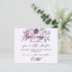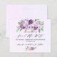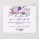 Um moderno e elegante Salve a Data para uma comemoração de aniversário marco. Violeta de cor aquosa, fundo de lavanda, texto preto. Decorado com flores violetas e roxas. Personalize e adicione uma data e um nome. O texto: Salvar a Data é gravado com um script de estilo com letra de tendência grande. 1 folha = 1 salve a data da borda impressa em borda.