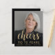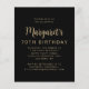 A frente deste convite de 70º aniversário apresenta a foto da homenageada com uma sobreposição de texto em dourado. A palavra "parabéns" aparece em elegante caligrafia dourada, seguida por "aos 70 anos" e o nome da homenageada e data de aniversário em fonte sem serifa. Uma tela escura ajuda a destacar o texto. Personalize o verso com o nome e detalhes da festa em um fundo preto. Uma ótima maneira de celebrar alguém que está fazendo setenta anos! (NOTA: Os envelopes não estão incluídos automaticamente neste convite econômico. Para adicionar envelopes ao seu pedido, use o menu suspenso "Envelopes".)