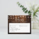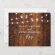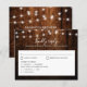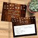 Esses cartões de RSVP de casamento rústico orçamentários apresentam um fundo de madeira quente acentuado com luzes de corda suavemente brilhantes, criando uma atmosfera aconchegante e convidativa. A mistura elegante de fontes manuscritas e sem serifa adiciona um toque sofisticado e encantador, tornando-o perfeito para casamentos em celeiros, no campo ou ao ar livre. A frente exibe os nomes do casal em um layout elegante, enquanto a parte de trás fornece uma seção de resposta bem-organizada com opções de refeição, garantindo uma experiência tranquila para os convidados. Ideais para casais que buscam um design de RSVP atemporal e elegante que complemente seu tema de casamento rústico, esse cartão acessível combina belamente estilo e funcionalidade.