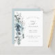 Casamento De Florais De Inverno Salve A Data. Um alternativo de 4,5 pol x 5,6 pol com preço inferior. Disponível em um STOCK DE CARTÃO SEMI-GLOSS 110 lb, que é a opção padrão (mais espesso para convites), OU um STOCK de PAPEL THINNER FINISH 80 lb FINISH (ideal para gabinetes). Os envelopes são um extra opcional e são ligeiramente maiores que o tamanho da placa. Folhagem de inverno e flores modernas, de cor aquosa, para o inverno e casamentos de férias, em palha macia e azul em pó ao longo do lado esquerdo e tipografia à direita. Um azul de coordenação está atrás. Personalize facilmente o texto para seus próprios detalhes.