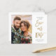 Um anúncio moderno e limpo de foto para salvar a data com mensagem de salvar nossa data em letra cursiva. Clique no botão de editar para personalizar este design.