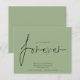 Um valor para o alternativo do ORÇAMENTO em tamanho menor de 4,5 x 5,6" de semirbrilho de 110 lbs, que é de espessura semelhante a um cartão postal (no entanto, não é adequado para uso como cartão postal). POR FAVOR, OBSERVE QUE HÁ UM convite por folha. Orçamento Decidido no Forever Sage Green Salvar a Data Um design simples em um plano de fundo de sábio verde para convidar seus convidados a salvar sua data. Decidimos no Forever que está em um script de na moda está no centro.O resto do texto que você pode personalizar facilmente. As cores de texto e de fundo podem ser alteradas se você quiser se adequar melhor ao seu tema de casamento através da opção personalizar mais.