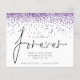 O Orçamento Que Decidimos Para Sempre É Que O Glitter Roxo Salve A Data. Um alternativo de 4,5 pol x 5,6 pol com preço inferior. Disponível em um STOCK DE CARTÃO SEMI-GLOSS 110 lb, que é a opção padrão (mais espesso para convites), OU um STOCK de PAPEL THINNER FINISH 80 lb FINISH (ideal para gabinetes). Os envelopes são um extra opcional e são ligeiramente maiores que o tamanho da placa. Decidimos que o Forever está num script de na moda está no centro. O resto do texto que você pode personalizar facilmente. Uma borda do estilo de configuração de falso roxo é executada ao longo do topo em ambos os lados.