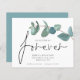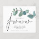 Um valor para o alternativo do ORÇAMENTO em tamanho menor de 4,5 x 5,6" de semirbrilho de 110 lbs, que é de espessura semelhante a um cartão postal (no entanto, não é adequado para uso como cartão postal). POR FAVOR, OBSERVE QUE HÁ UM convite por folha. Decidimos que o Forever EucalyptUs Salve Data Forever em um script de conjunto informal.O resto do texto que você pode personalizar facilmente. As cores de fundo branco e de texto podem ser alteradas se você desejar por meio da opção personalizar mais.