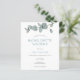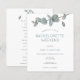 Um preço orçamentário menor, alternativo de papel de 4,5" x 5,6". Observe que os envelopes não estão incluídos. Um ramo de elegantes folhas azuis de eucalipto decora a tipografia superior e na moda, abaixo, que é facilmente personalizada para os detalhes de sua Festa de solteira. Ao contrário, está o seu itinerário que, mais uma vez, pode ser facilmente personalizado novamente com os motivos do eucalipto folha. Você pode alterar as cores de fundo em ambos os lados, bem como o texto para uma cor diferente, se desejar, por meio da opção Clique para personalizar mais.